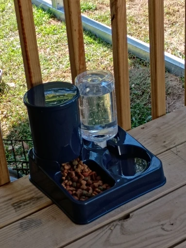 In two hours my cat dismantled it, removing the lid of the feeder and the water dish, then splashing and emptying the bottle which, being weightless and not threaded, I easily threw and he started playing with it. It's not cat-proof.